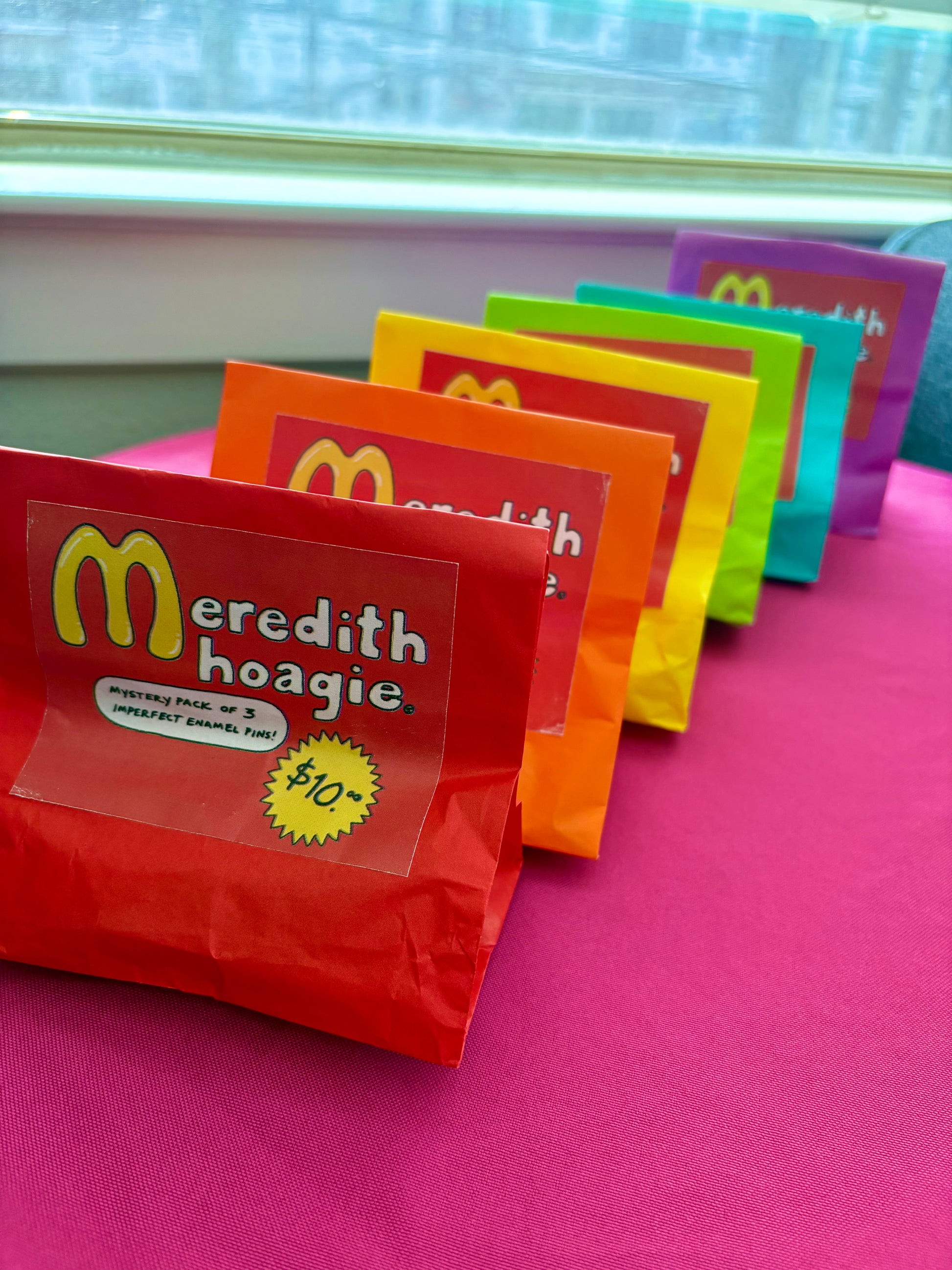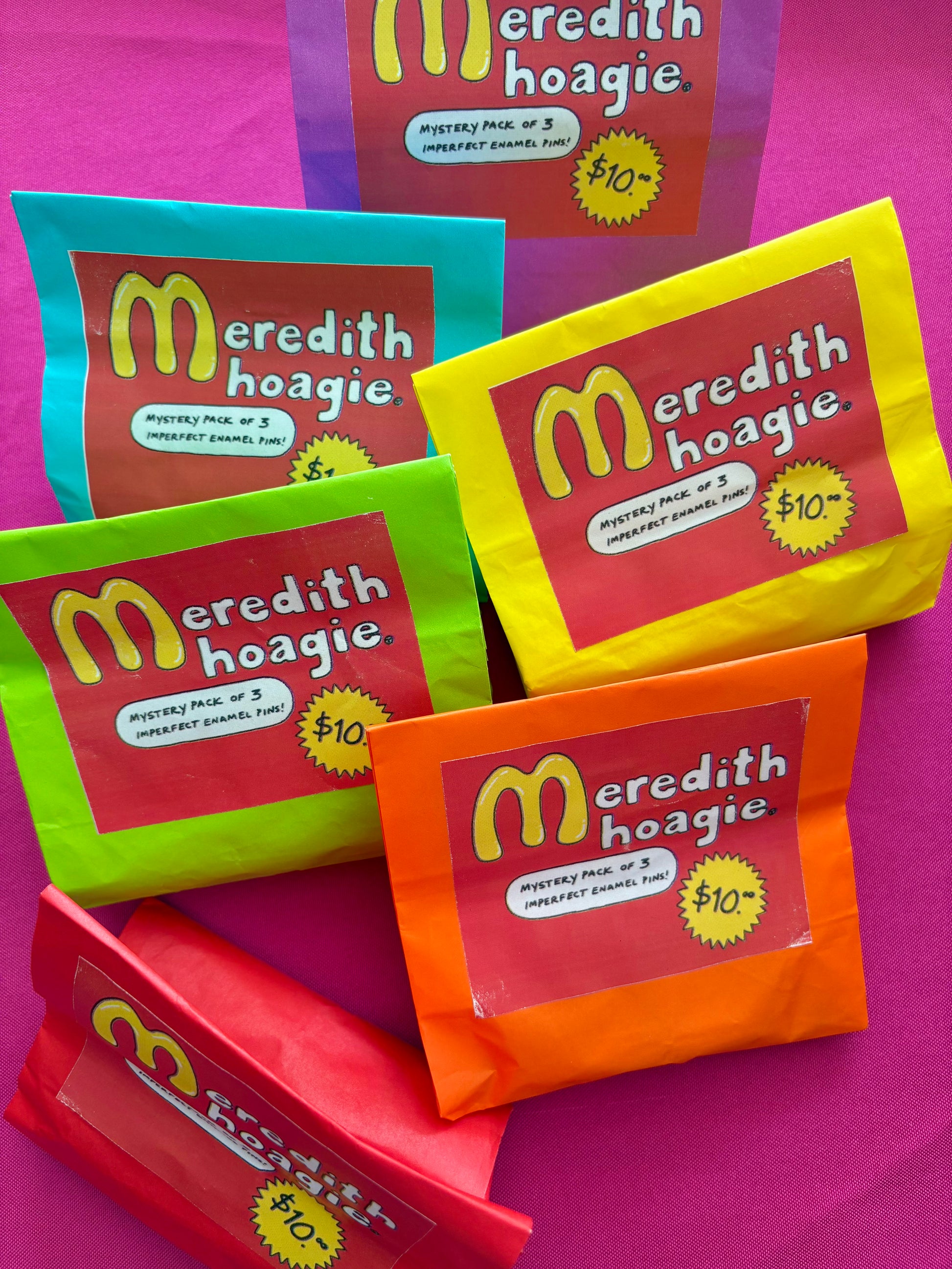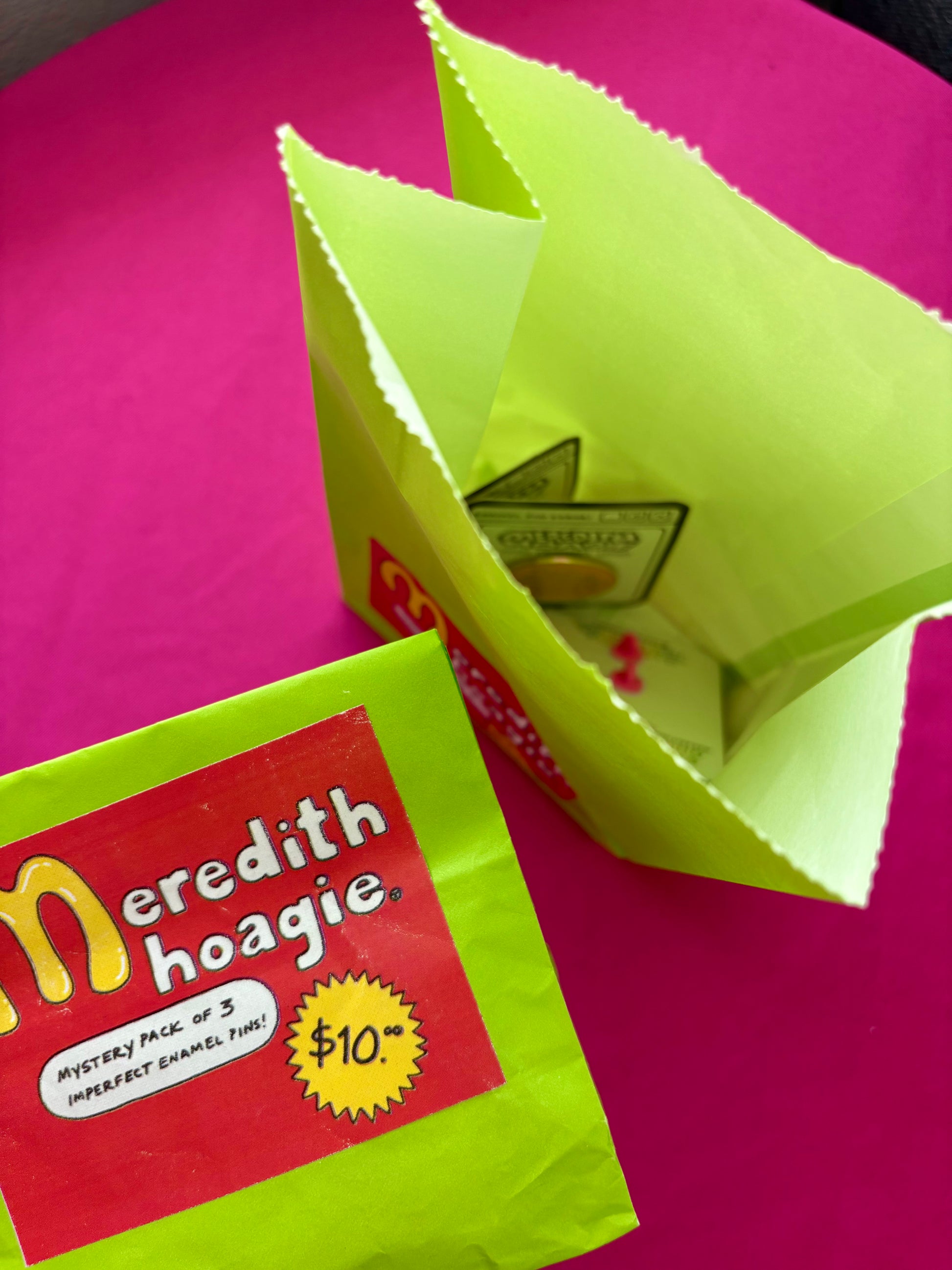 These happy meal-themed mystery bags contain 3 random imperfect pins!