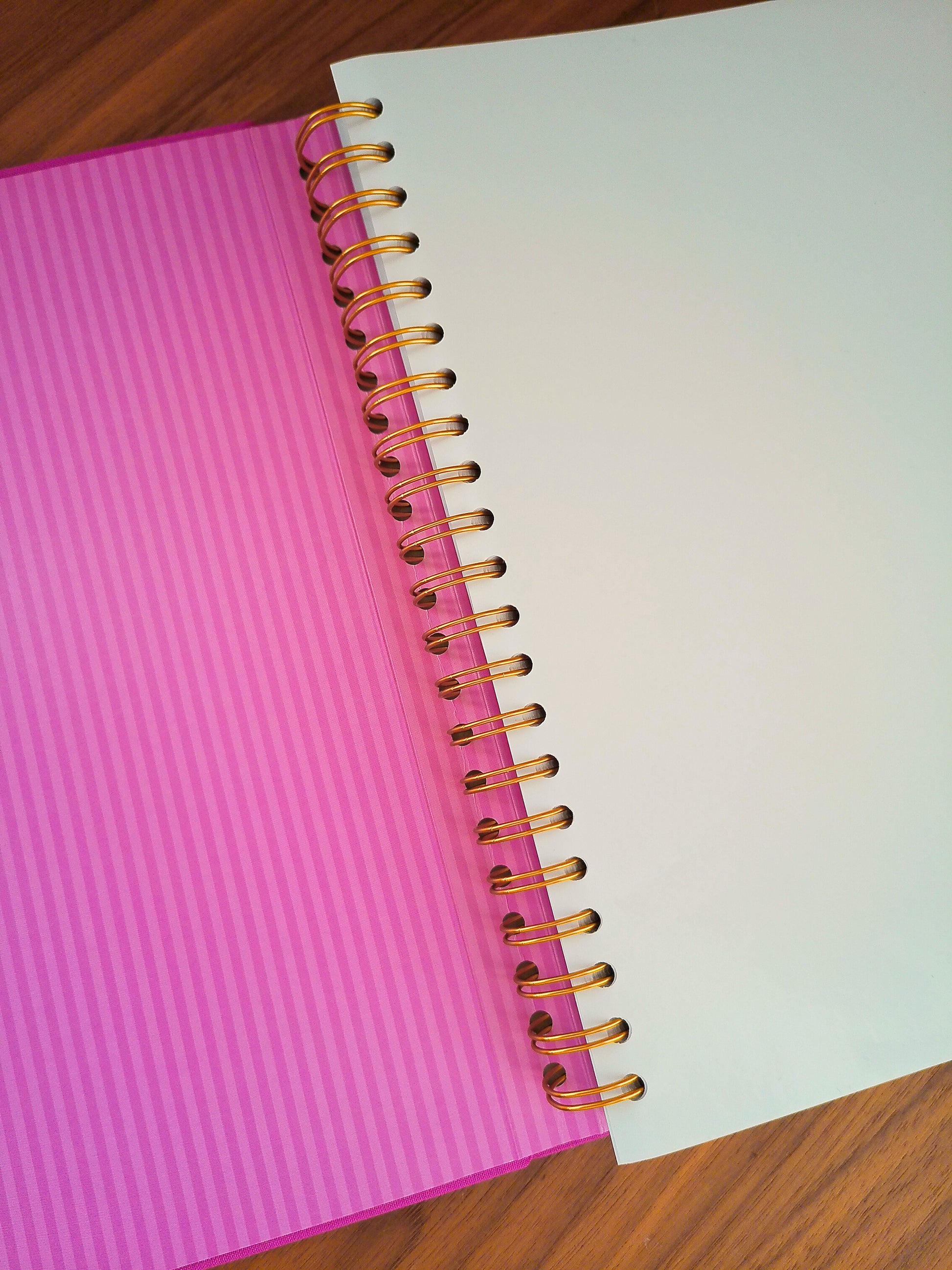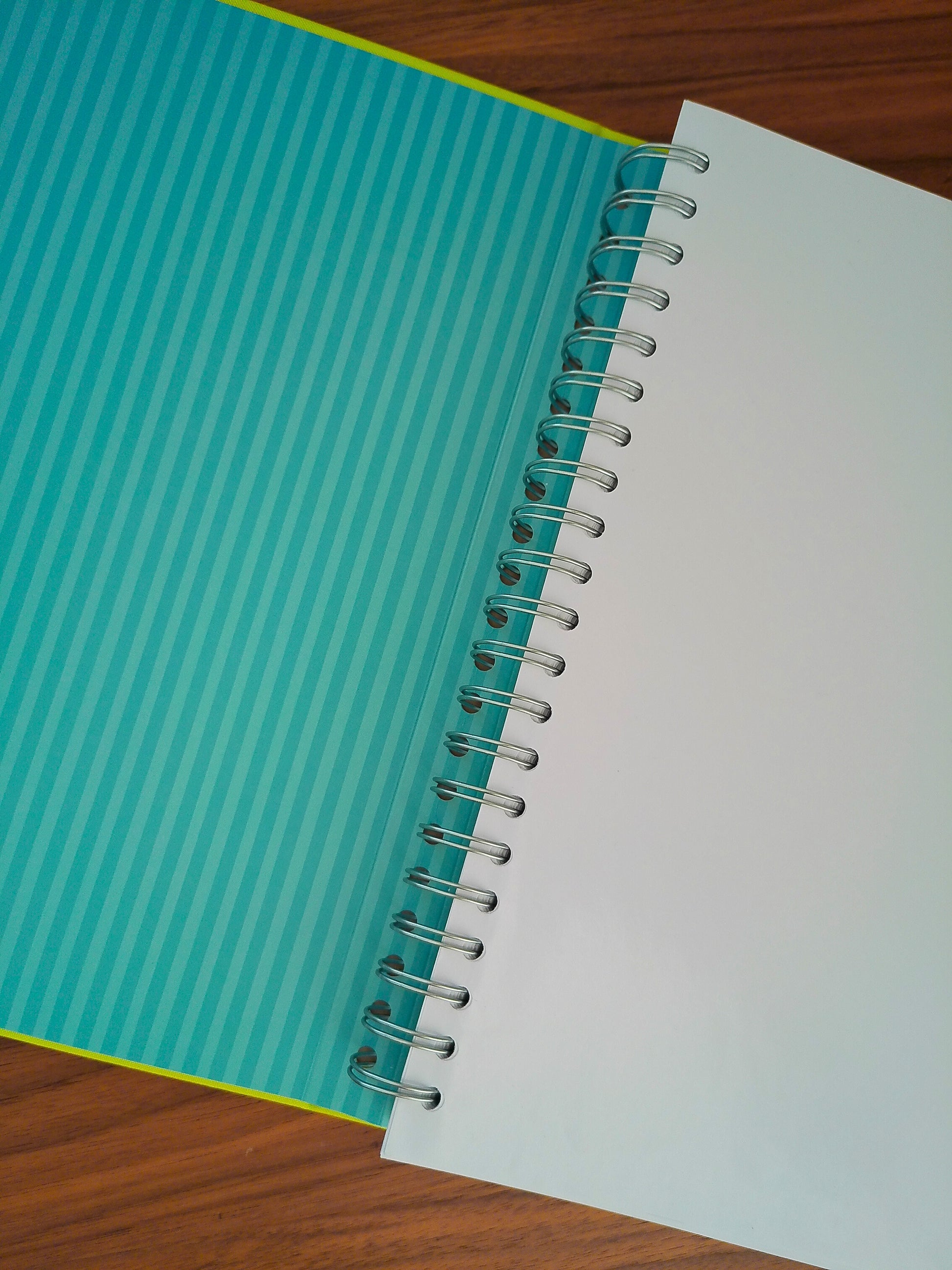 - Endsheets (paper lining the inside of the cover) are printed with a thin stripe design that coordinates with the colorway of the book